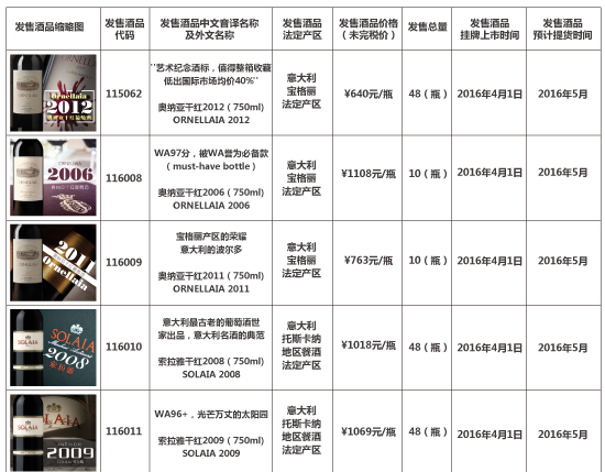 本次发售酒品挂牌上市公告详见上海自贸区红酒交易中心官网。