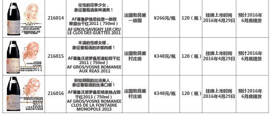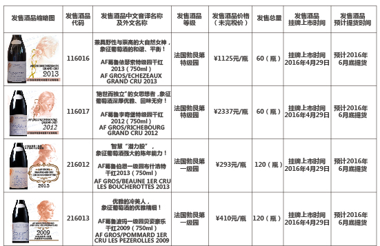 AF葛鲁依瑟索特级园干红2013(750ml)AF葛鲁李奇堡特级园干红2012(750ml)AF葛鲁伯恩一级园布什浩特干红2013(750ml)等酒品发售公告
