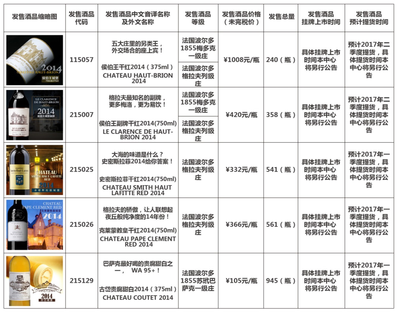 侯伯王干红2014(750ml)史密斯拉菲干红2014(750ml)克莱蒙教皇干红2014(750ml)古岱贵腐甜白2014(375ml)等酒品发售公告 上海自贸区红酒交易中心 发售声明 本发售...