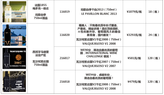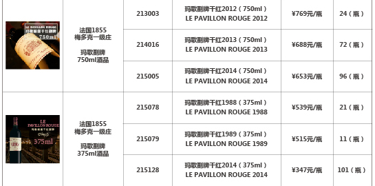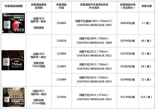 玛歌干红套装1983(750ml*2)玛歌干红2004(750ml)玛歌副牌干红1988(375ml)瓦尔柯索庄园V1干红2008(750ml)等酒品发售公告