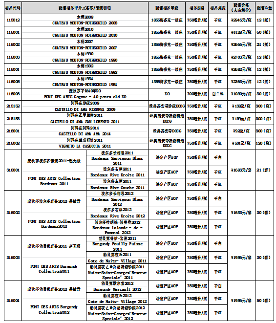 木桐2008庞狄莎干邑40年XO阿玛庄珍藏2009庞狄莎波尔多套装2011-赵无极庞狄莎波尔多套装2012-岳敏君等酒品配售公告