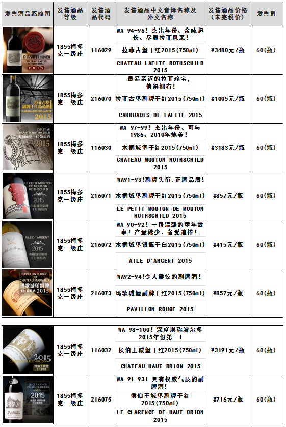 关于玛歌城堡干红2015(750ml) -酒品代码:116031玛歌白亭干白2015(750ml)-酒品代码:216074提前结束发售的通知
