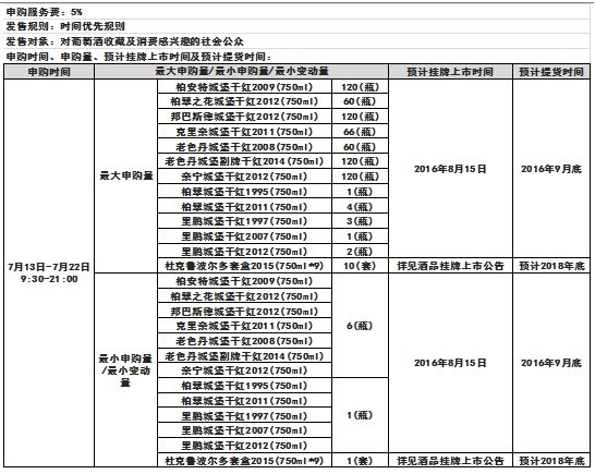 本发售公告的目的仅为向公众提供有关本次发售的基本情况,发售公告全文同时刊载在上海自贸区红酒交易中心官方网站[www.winex-sh.com]。