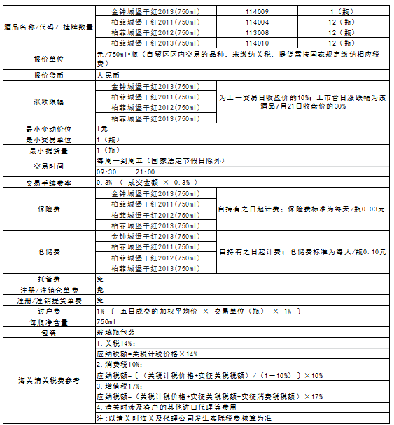 金钟城堡干红2013(750ml)柏菲城堡干红2011(750ml)柏菲城堡干红2012(750ml) 柏菲城堡干红2013(750ml)酒品挂牌上市公告
