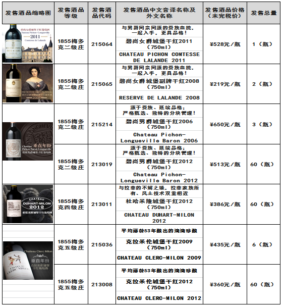 关于克拉米伦城堡干红2002(1.5L)-酒品代码:215070,达玛雅克城堡干红2008(1.5L)-酒品代码:215071等五款酒品提前结束发售的通知 各会员单位及交易用户: 根据《碧尚女爵...
