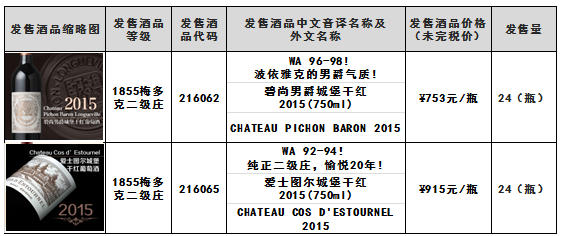 关于碧尚男爵城堡干红2015(750ml)-酒品代码:216062爱士图尔城堡干红2015(750ml)-酒品代码:216065酒品结束发售的通知