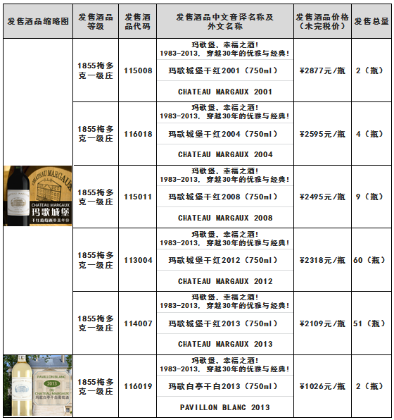 玛歌城堡干红2001(750ml)玛歌白亭干白2013(750ml)玛歌城堡副牌干红1988(375ml)鲁臣世家城堡干红2006(750ml)等酒品发售公告 上海自贸区红酒交易中心 发售声明 ...