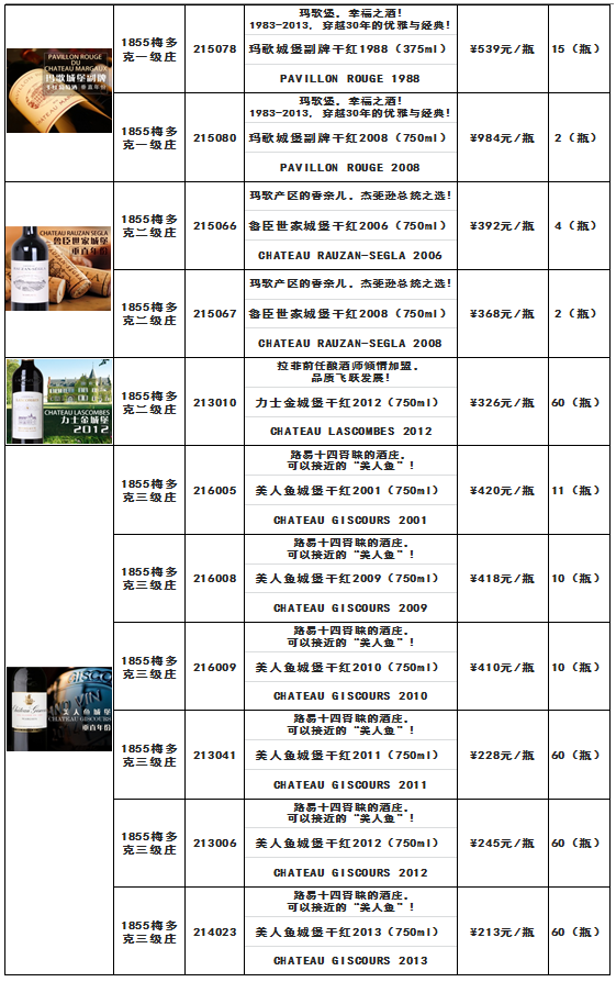 根据《玛歌城堡干红2001(750ml)玛歌白亭干白2013(750ml)玛歌城堡副牌干红1988(375ml)鲁臣世家城堡干红2006(750ml)等酒品发售公告》,本次玛歌城堡副牌干红1989(375ml) -酒品代码:215079和玛歌城堡副牌干红2010(750ml)-酒品代码:215030两款酒品于8月1日13时34分发售结束。