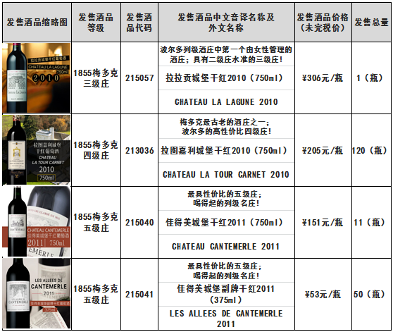 拉拉贡城堡干红2010(750ml)拉图嘉利城堡干红2010(750ml)佳得美城堡干红2011(750ml)等酒品发售公告
