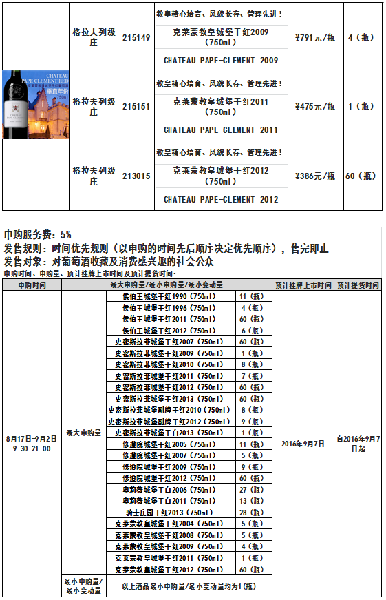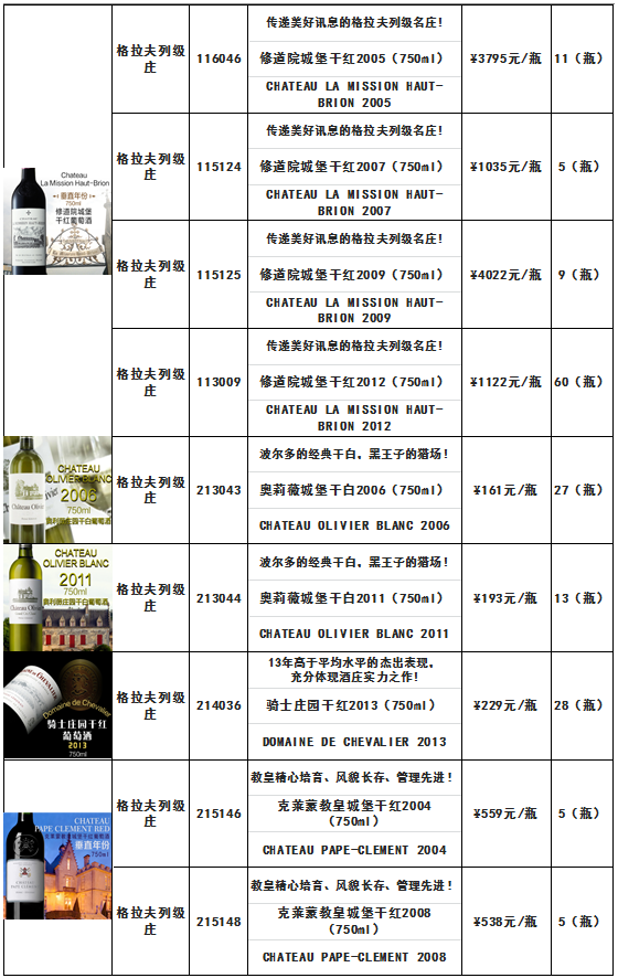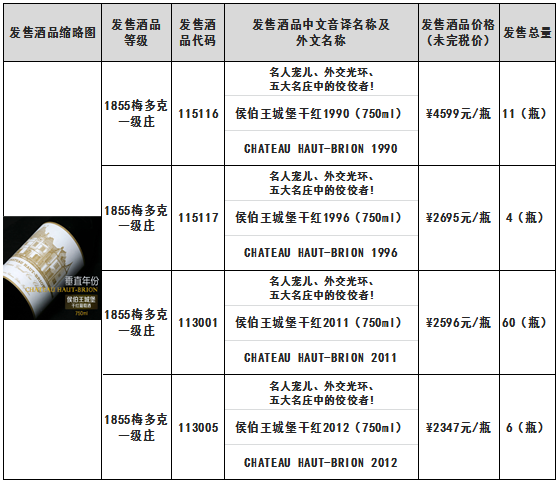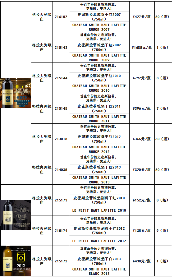 侯伯王城堡干红1990(750ml)史密斯拉菲城堡干红2007(750ml)修道院城堡干红2005(750ml)等酒品发售公告