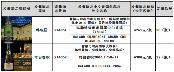 关于玛勒一级葡萄园白香槟(750ml)-酒品代码:214048酒品提前结束发售的通知