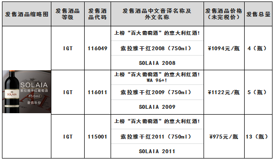 根据《索拉雅干红2008(750ml)索拉雅干红2009(750ml)索拉雅干红2011(750ml)布鲁诺托巴罗洛干红2011(750ml)酒品发售公告》,本次布鲁诺托巴罗洛干红2011(750ml)-酒品代码:215131酒品截止于8月31日15时55分发售结束。