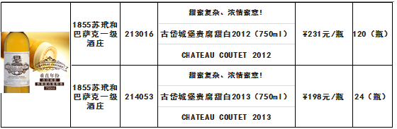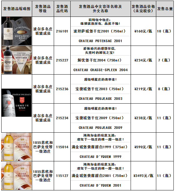 根据《拉拉贡城堡干红2010(750ml)拉图嘉利城堡干红2010(750ml)佳得美城堡干红2011(750ml)等酒品发售公告》,本次波坦萨城堡干红2002(750ml)-酒品代码:215231酒品截止于9月1日15时32分发售结束。