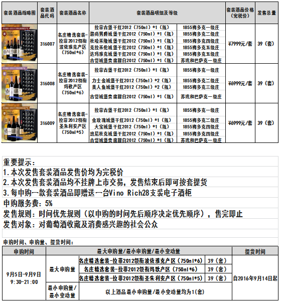 名庄精选套装-拉菲2012领衔波依雅克产区(750ml*6)名庄精选套装-拉菲2012领衔玛歌产区(750ml*6)等套装酒品发售公告