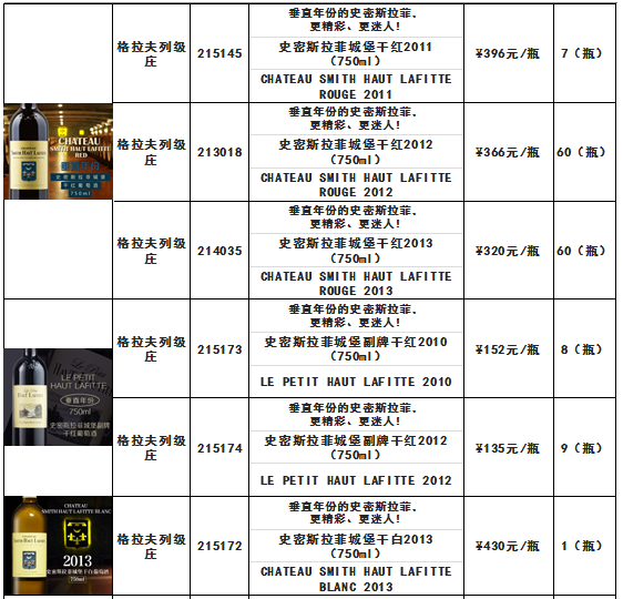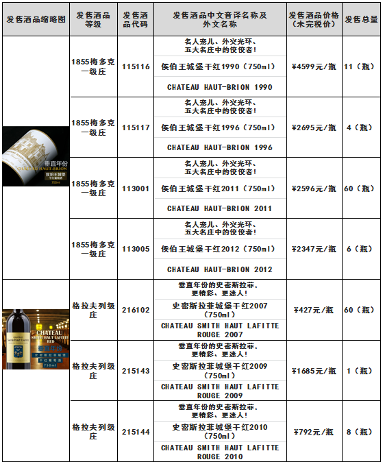 关于侯伯王城堡干红1990(750ml) -酒品代码:115116史密斯拉菲城堡干红2007(750ml)-酒品代码:216102等酒品结束发售的通知