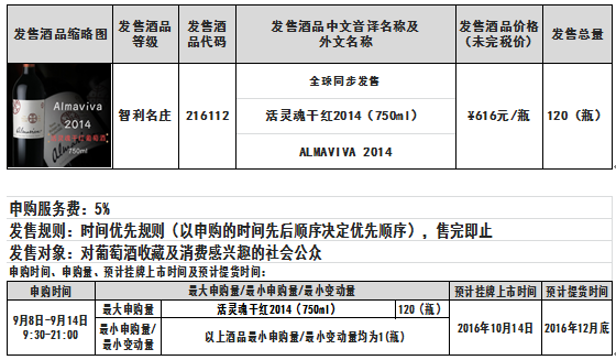 活灵魂干红2014(750ml)酒品发售公告上海自贸区红酒交易中心发售声明本发售公告的目的仅为向公众提供有关本次发售的基本情况,发售公告全文同时刊载在上海自贸区红酒交易中心官方网站[www.wi...