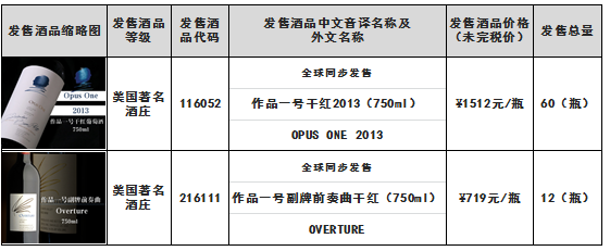 根据《作品一号干红2013(750ml)作品一号副牌前奏曲干红(750ml)酒品发售公告》,本次作品一号干红2013(750ml)-酒品代码:116052、作品一号副牌前奏曲干红(750ml)-酒品代码:216111酒品(详见下述列表)于9月7日21时00分全部发售结束。