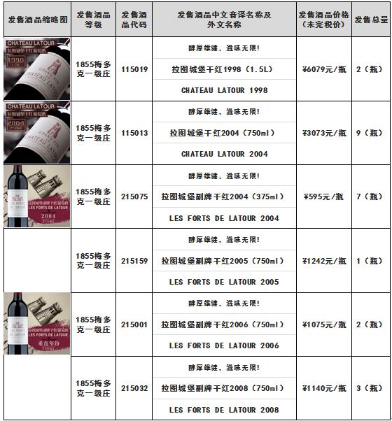 拉图城堡干红1998(1.5L)拉图城堡干红2004(750ml)拉图城堡副牌干红2004(375ml)等酒品发售公告