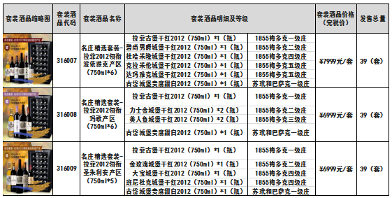 关于名庄精选套装-拉菲2012领衔波依雅克产区(750ml*6)-酒品代码:316007等套装酒品结束发售的通知