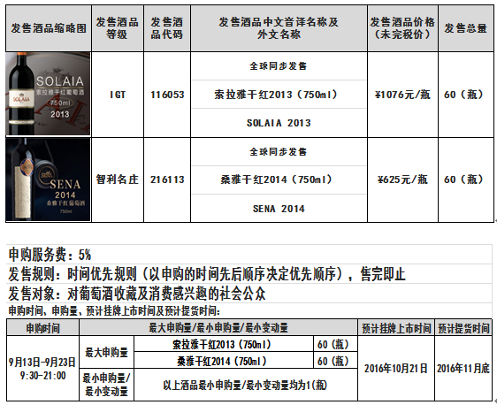 索拉雅干红2013(750ml)桑雅干红2014(750ml)酒品发售公告