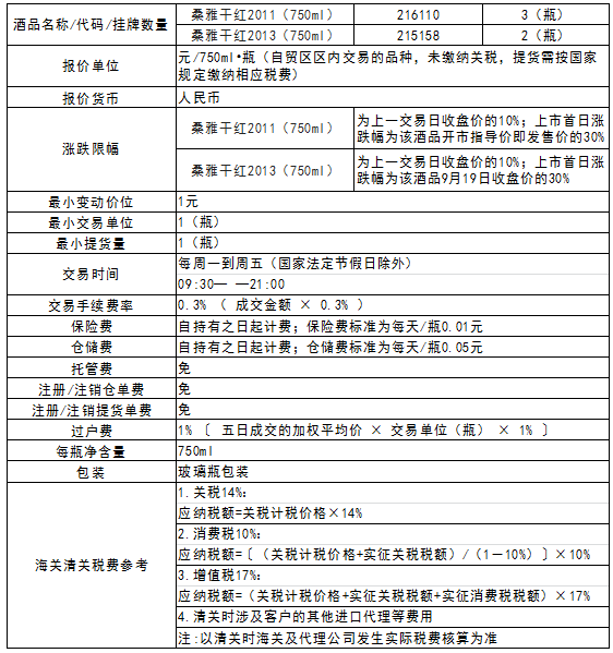 桑雅干红2011(750ml)桑雅干红2013(750ml)酒品挂牌上市公告
