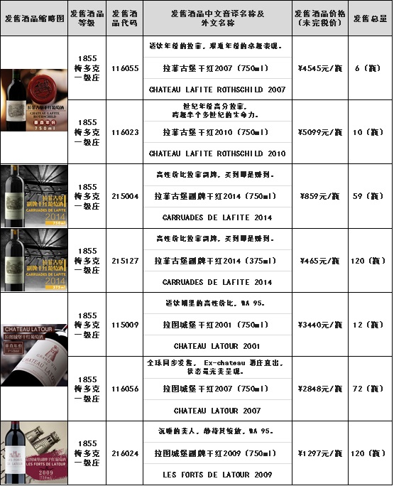 关于拉菲古堡干红2007(750ml)-酒品代码:116055拉图城堡干红2001(750ml)-酒品代码:115009等酒品结束发售的通知