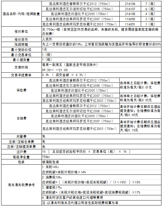 昆达莱利酒庄普默菲尔干红2012(750ml)昆达莱利酒庄经典阿玛罗尼干红2007(750ml)昆达莱利酒庄经典阿玛罗尼珍藏干红2003(750ml)等酒品挂牌上市公告