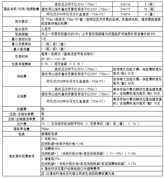 挂牌上市酒品相关规定如下表: