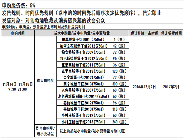关于玛歌城堡干红2012(750ml)-酒品代码:113004力士金城堡干红2012(750ml)-酒品代码:213010等酒品结束发售的通知 各会员单位及交易用户: 根据《玛歌城堡干红2012...