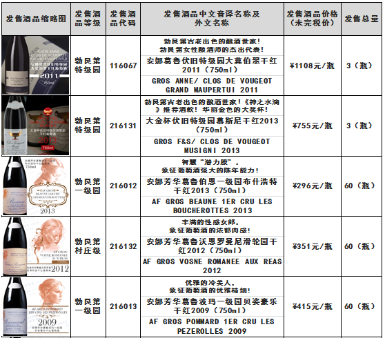 关于安娜葛鲁伏旧特级园大莫伯翠干红2011(750ml)-酒品代码:116067大金杯伏旧特级园慕斯尼干红2013(750ml)-酒品代码:216131等酒品结束发售的通知各会员单位及交易用户:...