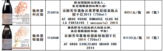 关于安娜葛鲁伏旧特级园大莫伯翠干红2011(750ml)-酒品代码:116067大金杯伏旧特级园慕斯尼干红2013(750ml)-酒品代码:216131等酒品结束发售的通知