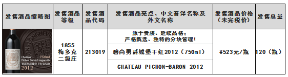 关于碧尚男爵城堡干红2012(750ml)-酒品代码:213019酒品结束发售的通知