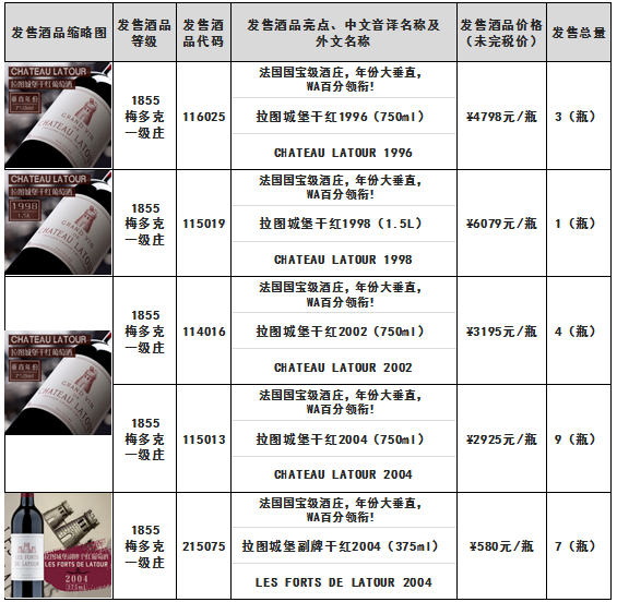 拉图城堡干红1996(750ml)拉图城堡干红1998(1.5L)拉图城堡副牌干红2004(375ml)拉图城堡副牌干红2005(750ml)等酒品发售公告