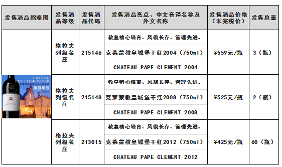 关于克莱蒙教皇城堡干红2004(750ml)-酒品代码:215146克莱蒙教皇城堡干红2008(750ml)-酒品代码:215148等酒品结束发售的通知
