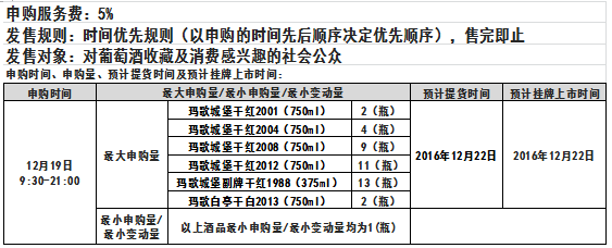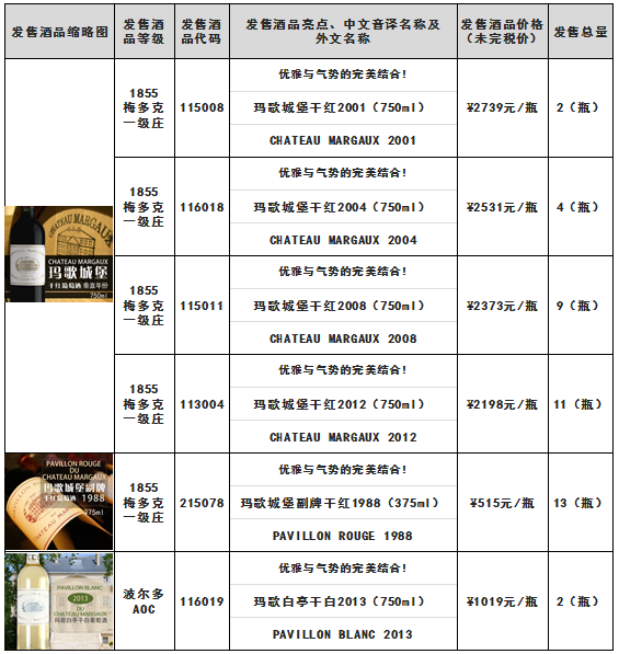 玛歌城堡干红2001(750ml)玛歌城堡干红2004(750ml)玛歌城堡干红2008(750ml)等酒品发售公告