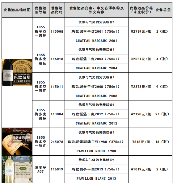 关于玛歌城堡干红2001(750ml)-酒品代码:115008玛歌城堡干红2004(750ml)-酒品代码:116018等酒品结束发售的通知