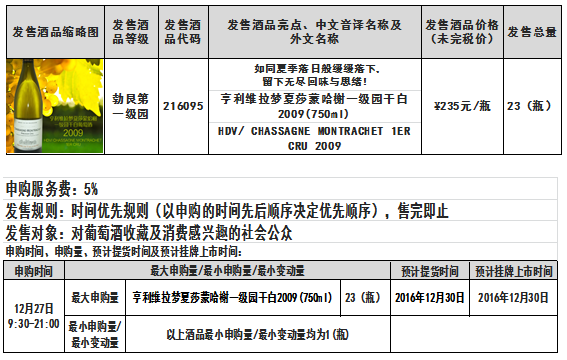 亨利维拉梦夏莎蒙哈榭一级园干白2009(750ml)酒品发售公告上海自贸区红酒交易中心 发售声明本发售公告的目的仅为向公众提供有关本次发售的基本情况,发售公告全文同时刊载在上海自贸区红酒交易中心...