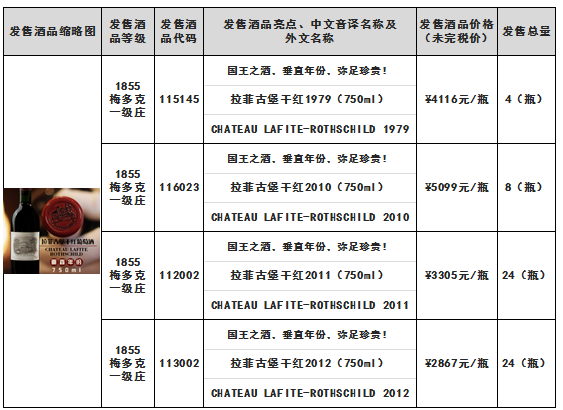 关于拉菲古堡干红1979(750ml)-酒品代码:115145拉菲古堡干红2010(750ml)-酒品代码:116023等酒品结束发售的通知