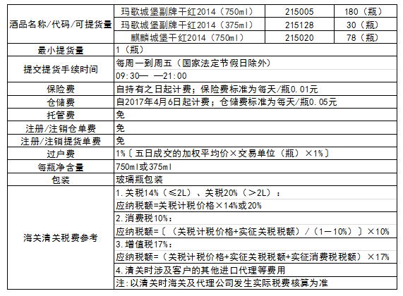 玛歌城堡副牌干红2014(750ml)麒麟城堡干红2014(750ml)等部分2014年份法国列级名庄酒品可提货的通知