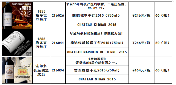 关于玛歌城堡干红2015(750ml)-酒品代码:116031力士金城堡干红2015(750ml)-酒品代码:216032等酒品结束发售的通知各会员单位及交易用户:根据《玛歌城堡干红2015(7...