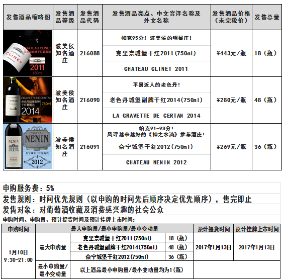 本发售公告的目的仅为向公众提供有关本次发售的基本情况,发售公告全文同时刊载在上海自贸区红酒交易中心官方网站[www.winex-sh.com]。