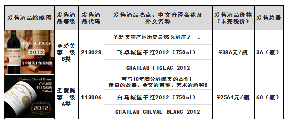 根据《飞卓城堡干红2012(750ml)白马城堡干红2012(750ml)酒品发售公告》,本次发售的飞卓城堡干红2012(750ml)-酒品代码:213028、白马城堡干红2012(750ml)-酒品代码:113006酒品(详见下述列表)于1月11日21时00分全部发售结束。