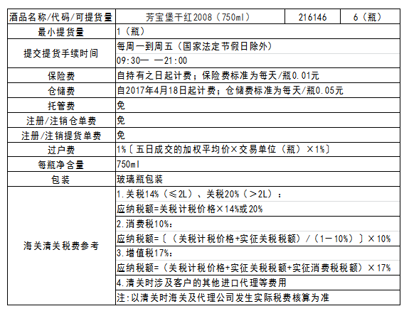 芳宝堡干红2008(750ml)酒品可提货的通知根据 《金钟城堡干红2011(750ml)柏菲城堡干红2011(750ml)白马城堡干红2012(750ml)等酒品发售公告》, 下列酒品已达上海...