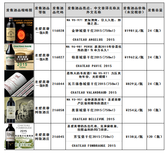 金钟城堡干红2015(750ml) 柏菲城堡干红2015(750ml) 瓦兰德鲁城堡干红2015(750ml)等酒品发售公告 上海自贸区红酒交易中心 发售声明 本发售公告的目的仅为向公...