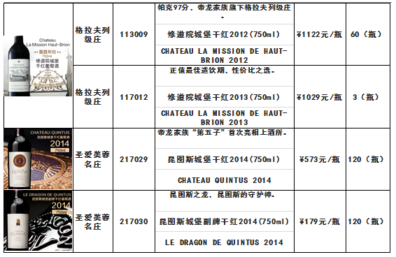 关于拉卡班城堡干红2015(750ml) -酒品代码:216036、克罗伦庄园干红2015(750ml)-酒品代码:216037等酒品结束发售的通知各会员单位及交易用户: 根据...