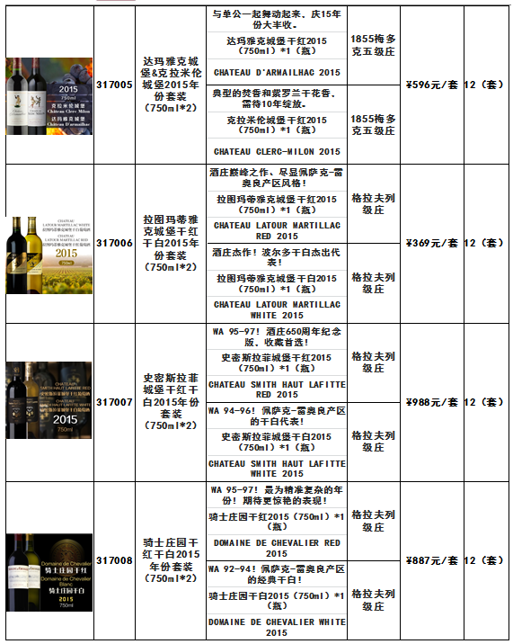 拉菲古堡正副牌2015年份套装、玛歌城堡正副牌2015年份套装等酒品发售公告