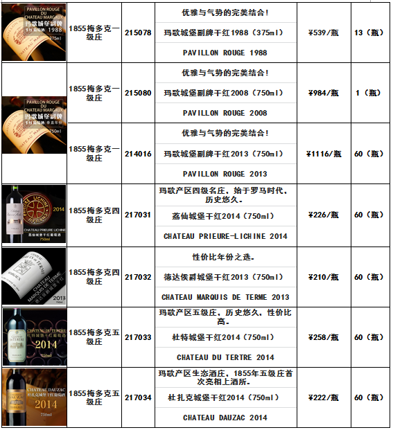 玛歌城堡干红2001(750ml) -酒品代码115008、玛歌城堡副牌干红1988 (375ml) -酒品代码215078、荔仙城堡干红2014(750ml)-酒品代码217031等酒品结束发售的通知