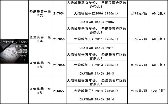 鲁臣世家城堡干红2003(750ml)、大炮城堡干红2006(750ml)等酒品发售公告