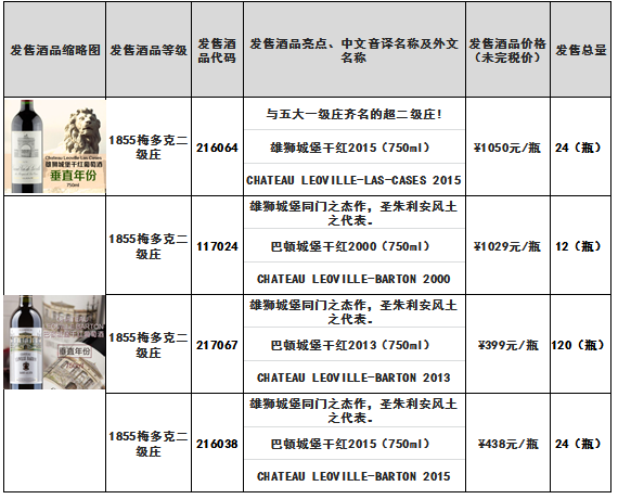 根据《雄狮城堡干红2014(750ml)、巴顿城堡干红2000(750ml)、波菲城堡干红2012(750ml)等酒品发售公告》,本次发售的雄狮城堡干红2014(750ml)-酒品代码:217066酒品截止于3月28日14时40分发售结束。