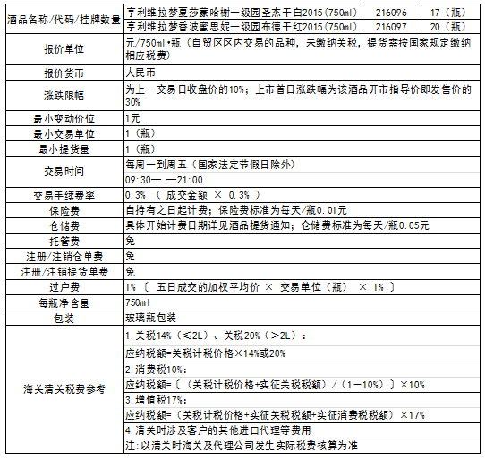 自上市日起,持有本次挂牌上市酒品的交易用户可以在本平台挂牌上市交易;预计在2017年7月可以提交提货手续,具体可提货日期详见本中心官网酒品提货通知。
